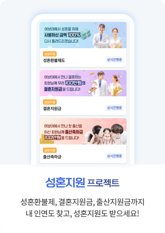 성혼지원 프로젝트의 지원금은 부가세 및 소득세(3.3%)를 제외하여 지급됩니다.